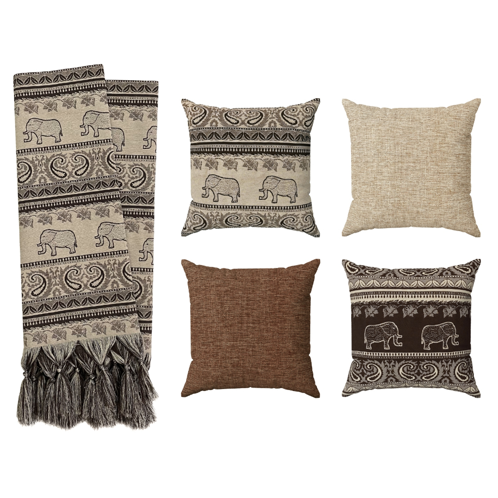Kit Manta Para Sofá Com 4 Capas De Almofadas Bege Marrom Indianas