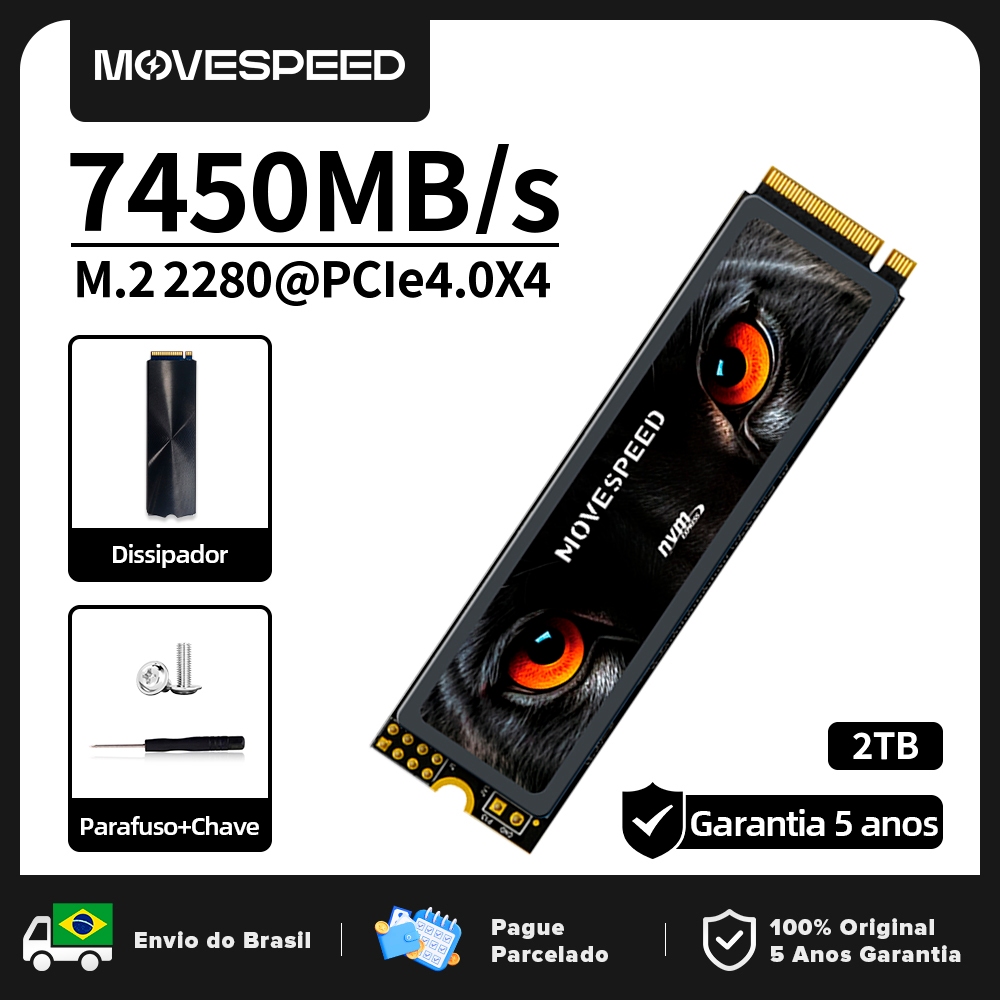 SSD Nvme M2 Movespeed 2T 7450mb Pcie 4.0x4 Compatível Com Ps5, Pc, Laptop