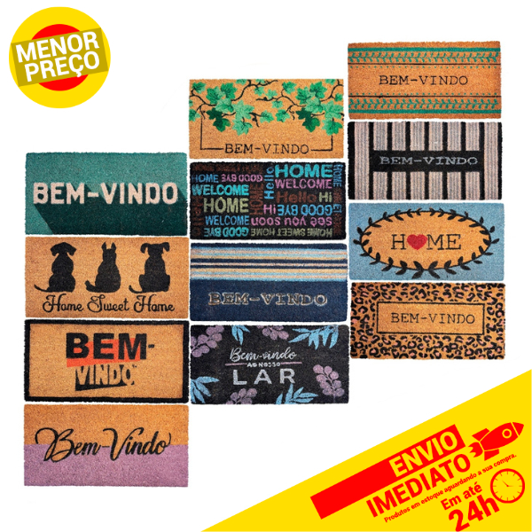 Capacho Tapete Fibra De Coco Porta Entrada Casa Apartamento Bem Vindo 30X60 Vários Modelos Ecológico