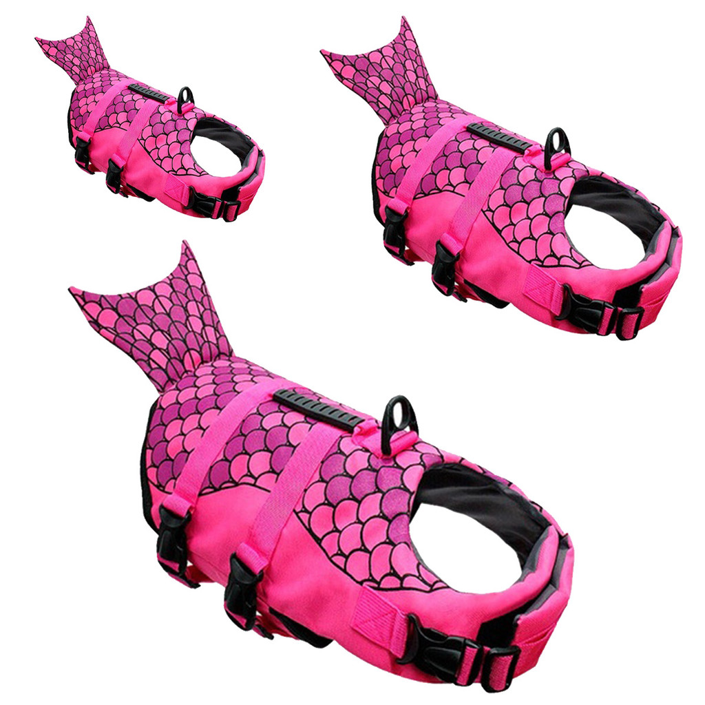 Colete Pet Salva Vidas Para Cachorro Cães e Gatos Piscina Roupa De Banho Rosa - Sereia