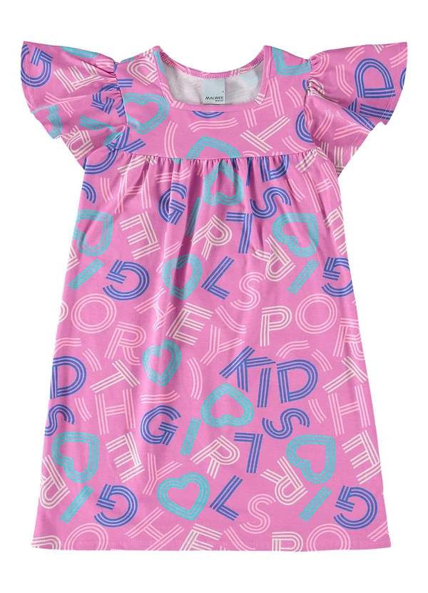 Vestido Infantil Evasê "Cachorrinho apaixonado" (Rosa) - Malwee Kids