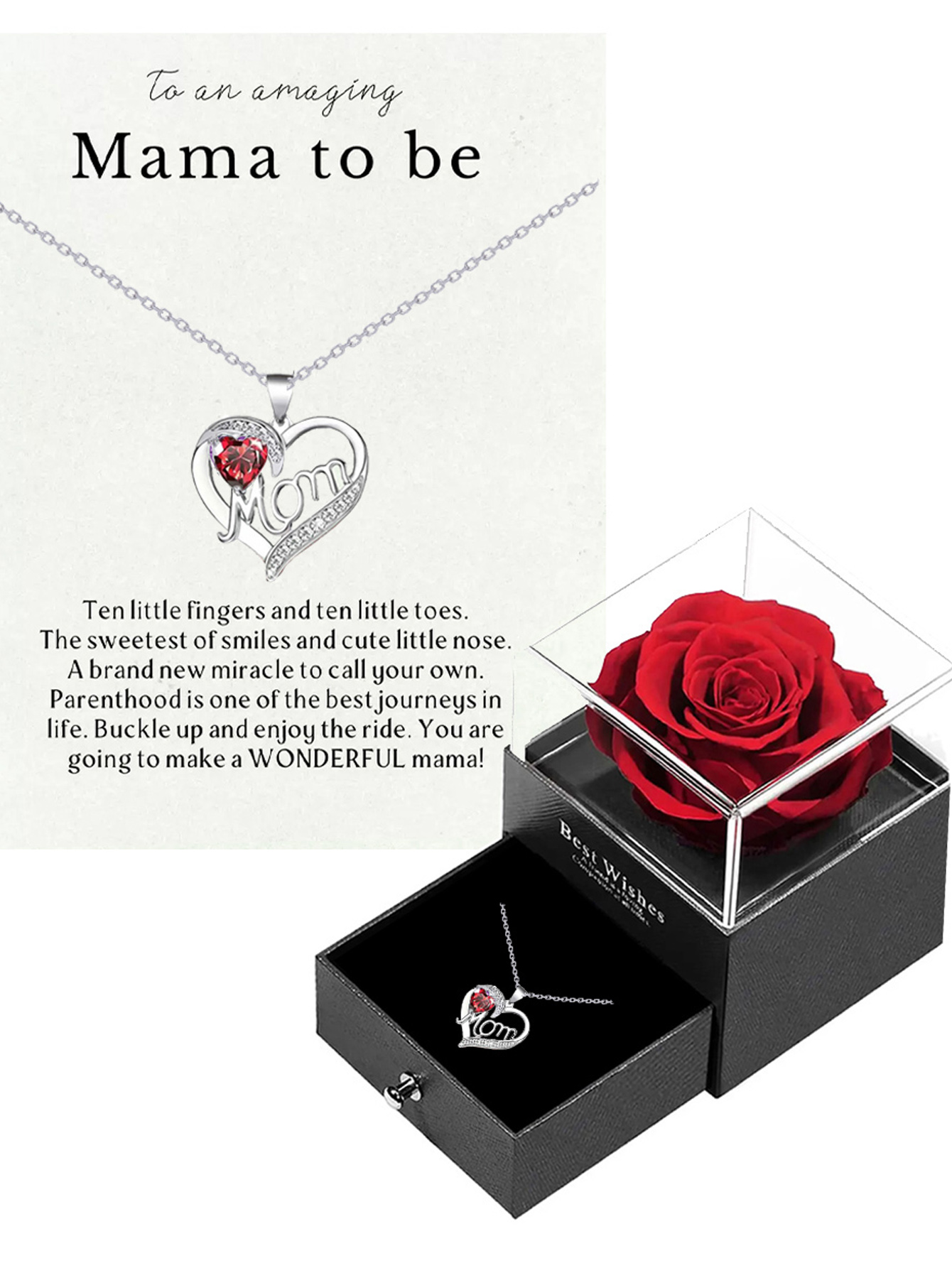 Colar Zircon em forma de coração Caixa de presente Rosa, Um Presente para o Dia da Mãe e da Sogra Dia da Mãe