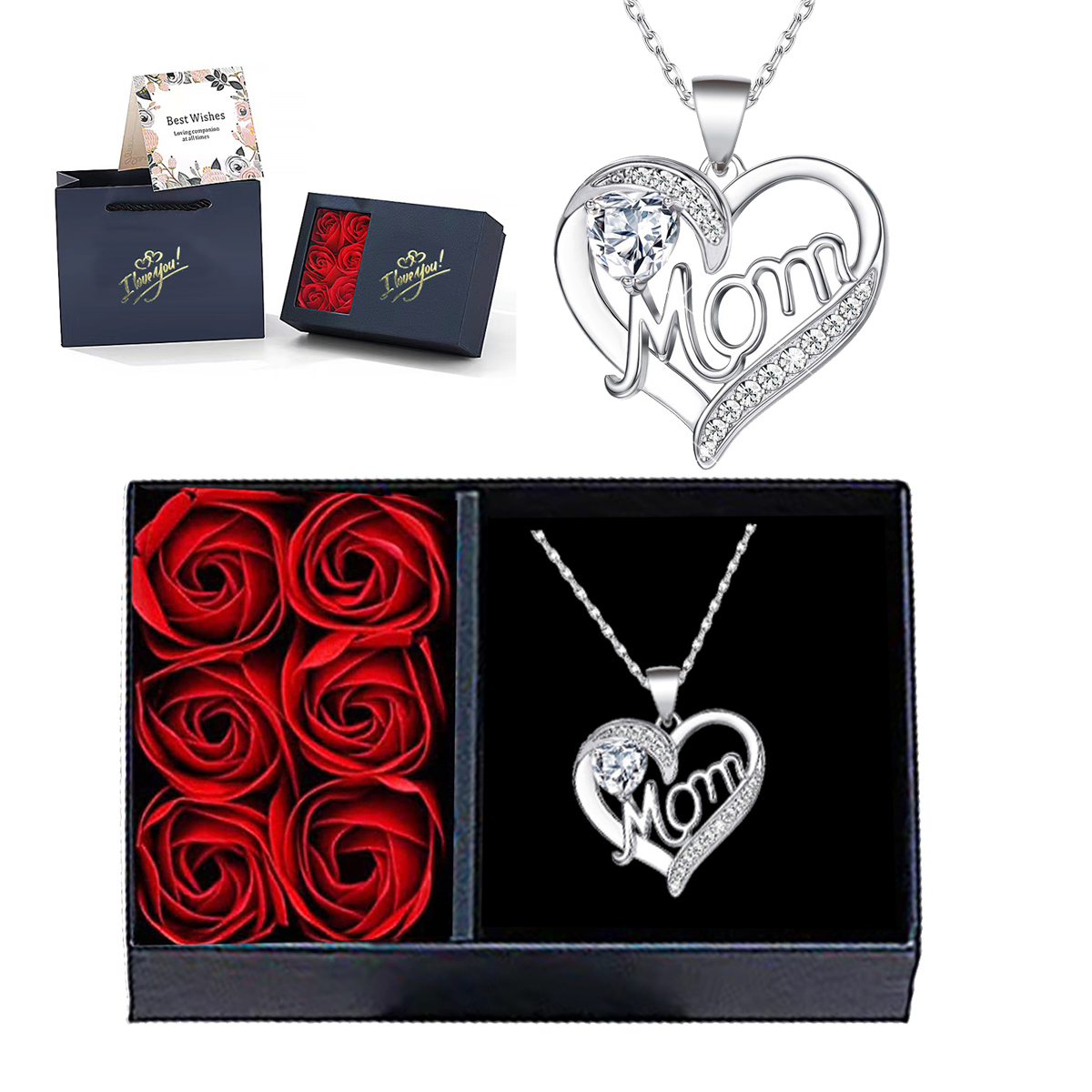 Um Colar de Senhoras Colar Zircon Colar e uma Caixa de Presentes Rosa Colar de Moda Pingente Dia das Mães O Presente Perfeito para a Mãe Colar em Forma de Coração Adequado para Festas de Férias Jóias Usadas para Várias Ocasiões