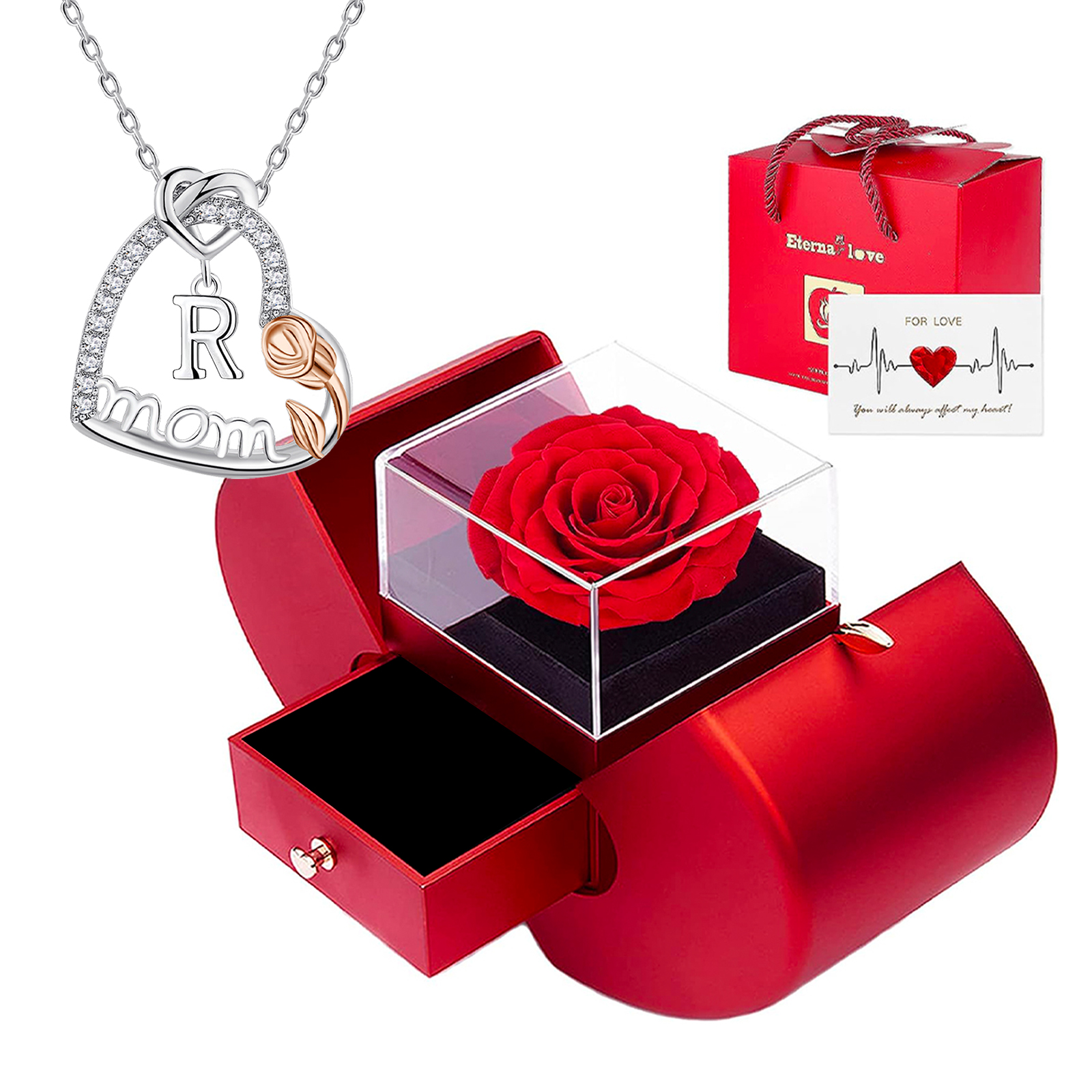Um Colar de Senhoras Colar Zircon Colar e Caixa de Presente de Maçã Vermelha Caixa de Presente de Moda Pingente Dia das Mães O Presente Perfeito para A Mãe Colar em Forma de Coração Adequado para Férias de Festa Várias Ocasiões Vestir Jóias Colar Gravado
