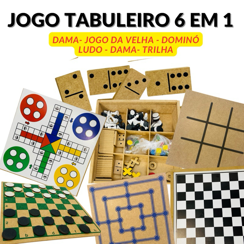Jogos 6x1 Dama, Jogo Da Velha, Ludo, Trilha, Dominó e Xadrez 6 em 1 Jogos de Tabuleiro Jogo de Mesa Completo