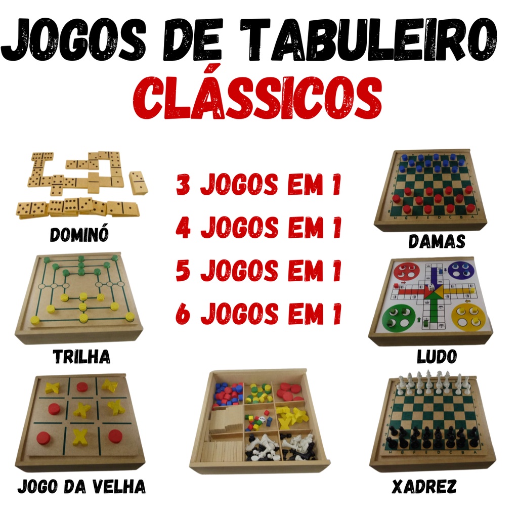 Kit Jogos Tabuleiro Xadrez Dama Ludo Trilha Jogo da Velha Dominó Jogo Mesa Diversão Clássica Adultos Crianças 6x1 5x1 4x