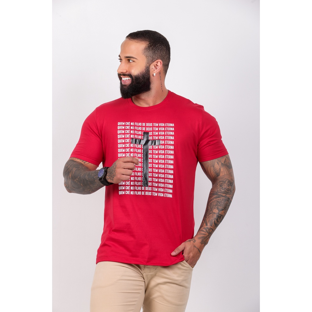 CAMISETA MASCULINA QUEM CRÉ NO FILHO DE DEUS TEM A VIDA ETERNA