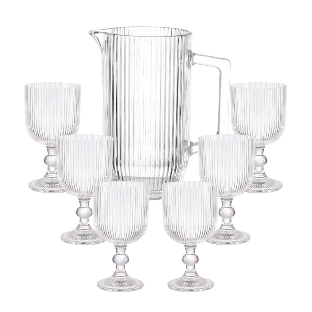 Jogo De Taças E Jarra De Vidro Transparente Graffiato 7 Peças - Hauskraft