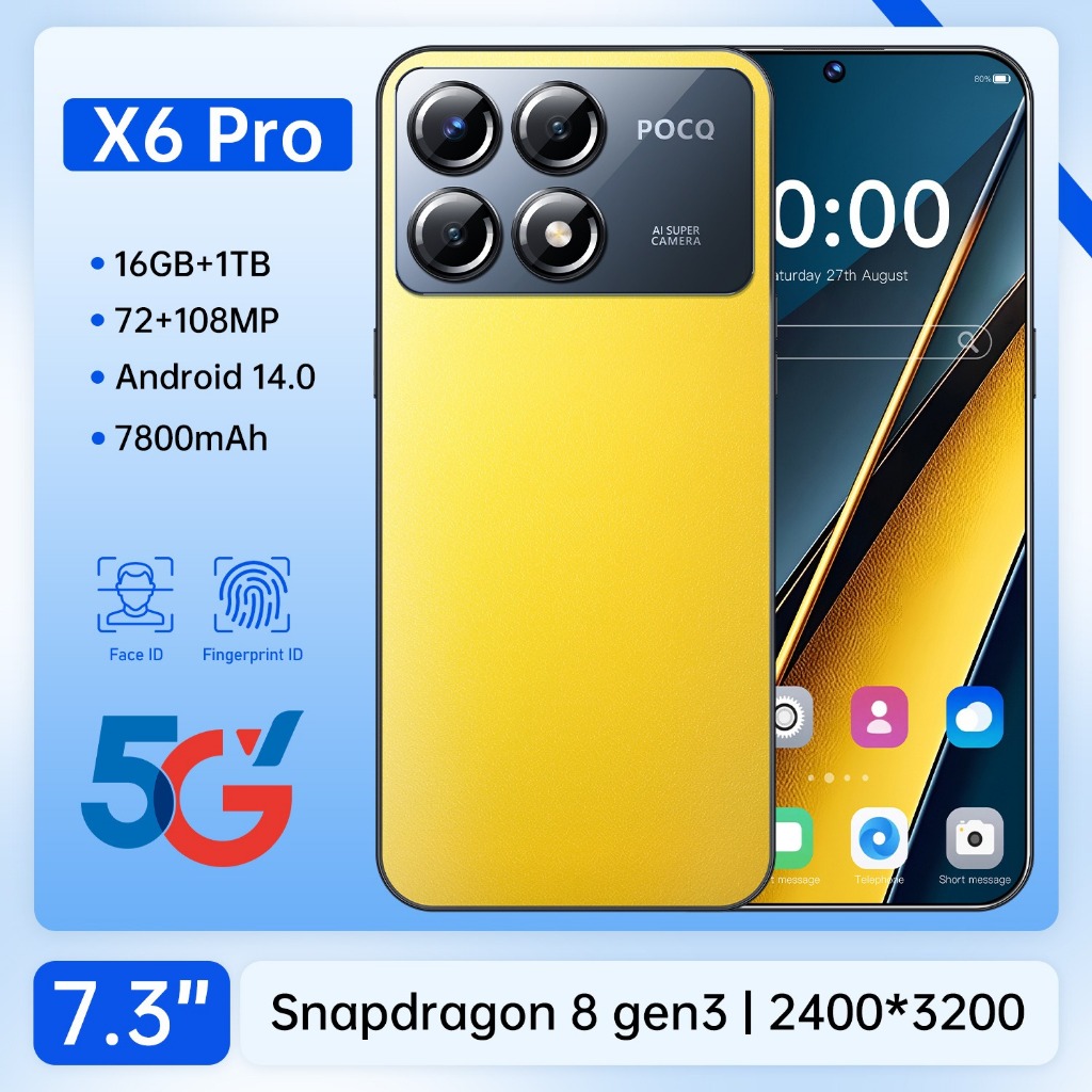 Celular 2025 Novo X6 Pro 7.3 Polegada Smartphone Acessível 16GB + 1TB Fácil De Usar Durável HD Telefone Prático Câmera B