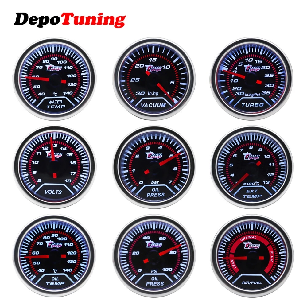 DepoTuning 2 " 52mm Impulso/Temperatura Da Água/Óleo Temp/Imprensa De/Volts/Tachômetro/Proporção De Combustível De Ar/EGT Medidor Analógico led Caso Branco