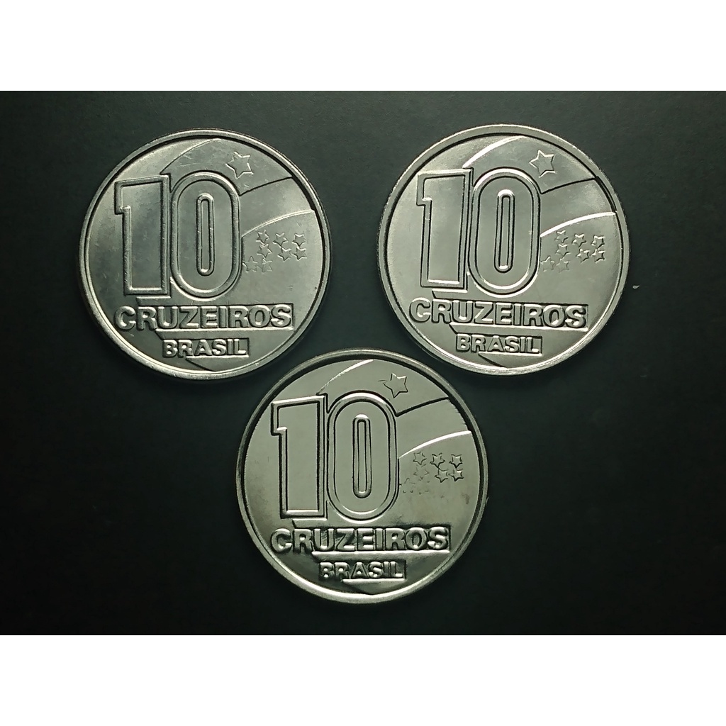 Moedas de 10 cruzeiros de 1990, 1991 e 1992, em ótimo estado de conservação