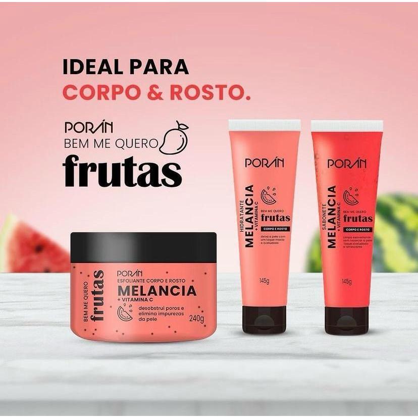 Kit com 3 Produtinhos :Cuidados Rosto e Corpo Melancia Esfoliante Sabonete Hidratante Porán