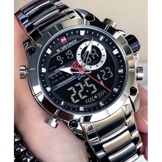 Relógio original luxo Digital e Analógico Naviforce Masculino Inoxidável