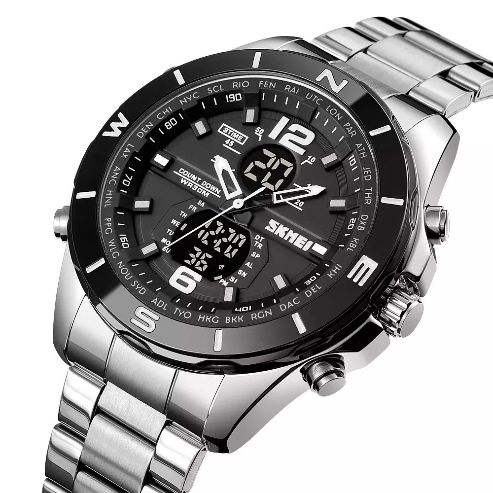 Relógio Masculino Skmei 1670 AnaDigi Prata e Preto c/ Alarme, Cronômetro, Luz – Original com Garantia de 12 Meses