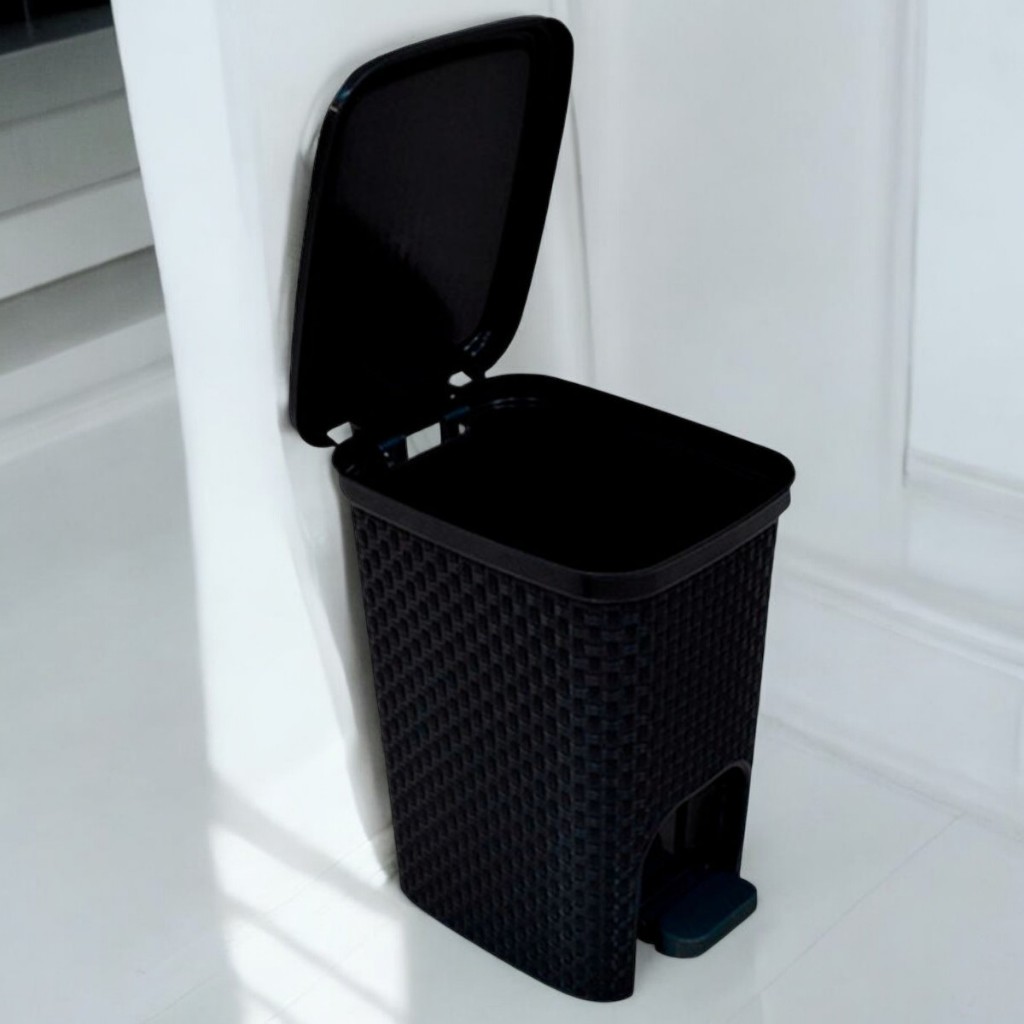 Lixeira 7 Litros Cesto de Lixo Com Tampa Pedal Para Cozinha Banheiro Escritório Rattan Reforçada Plástico Preta