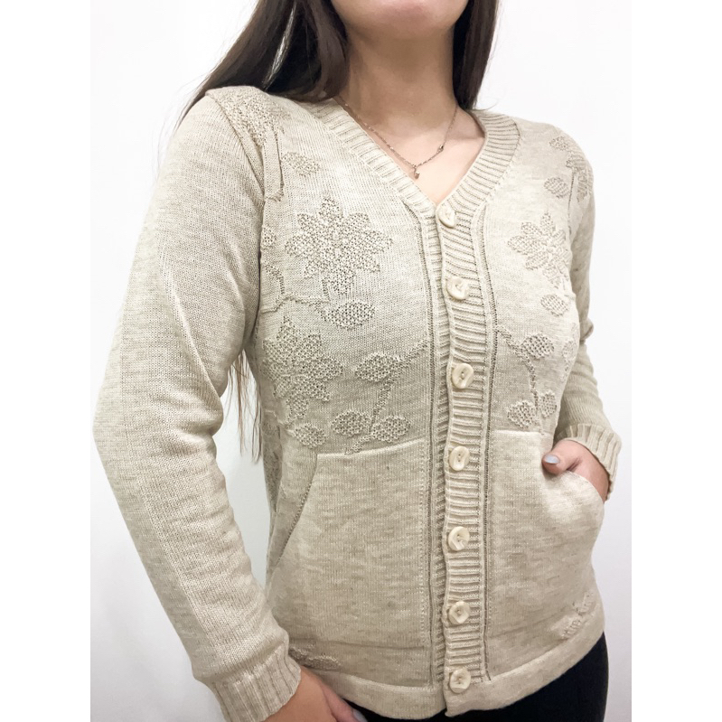 CASACO DE TRICOT BORDADO EM FLORES COM BOLSO, BLUSA DE FRIO INVERNO