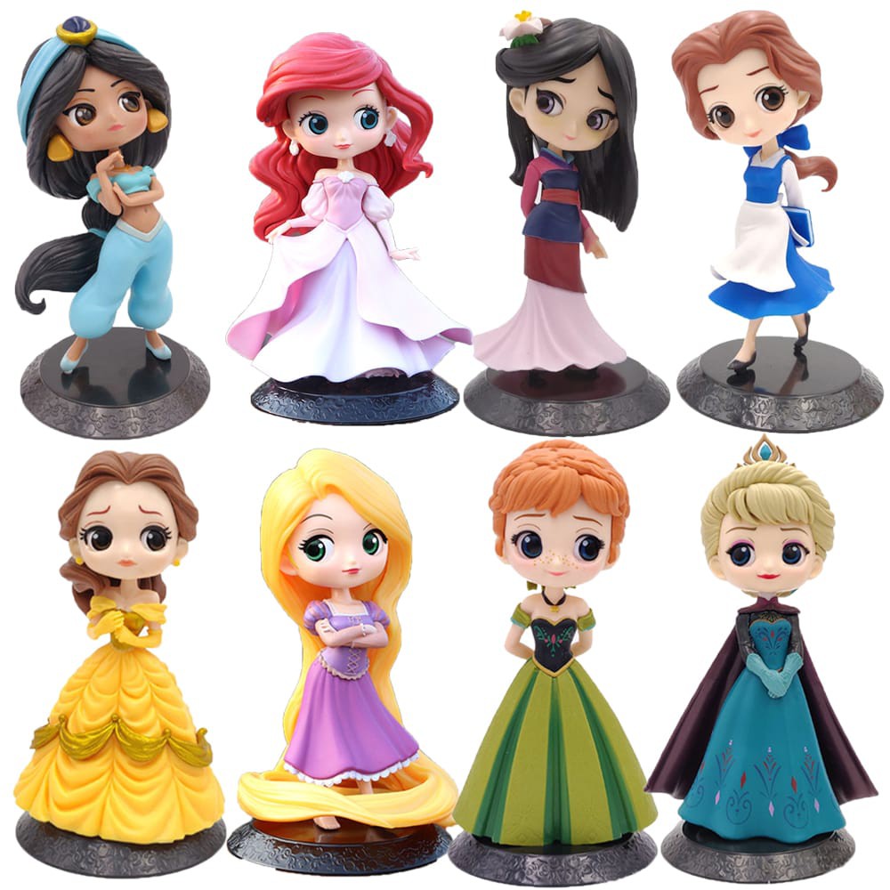 39 Estilo 14cm Versão Q Disney Princesa Da Neve Elsa Anna Rapunzel Jasmim Cinderela Sofia Ariel Mulan Alice Arale Figuras De Ação Brinquedos Modelo De Bolo Presentes