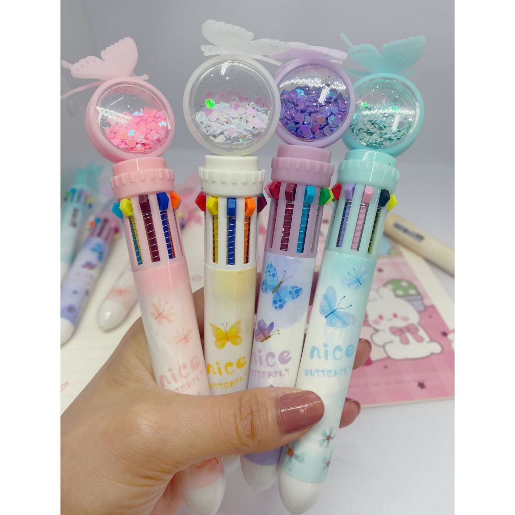 Caneta Esferografica 10 cores Borboleta Glitter Papelaria Escolar Escritorio