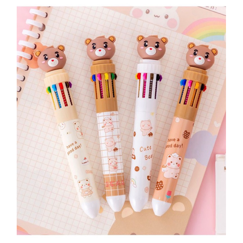 Caneta Ursinho Dos Desenhos Animados Caneta Esferográfica, Canetas Coloridas Gel de Tinta, Canetas Kawaii Silicone, Material Escolar E De Escritório, Papelaria, 0.5mm, 10 Cores