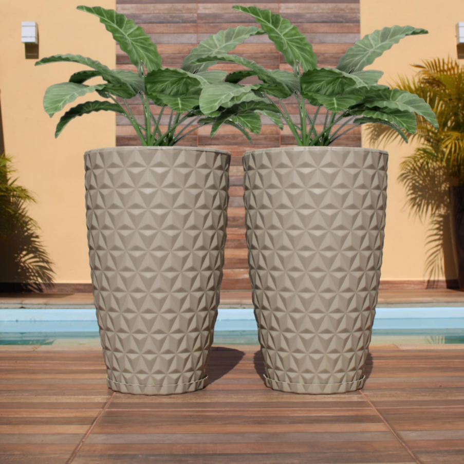 Kit 2 vaso de planta Grande Coluna Diamante N4 Decorativo em Polietileno 59cm + prato