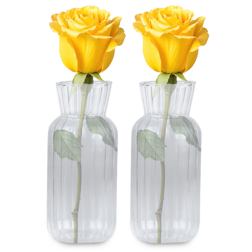 Kit 2 Vaso de Vidro Decorativo para Planta Flores 300ml Transparente Formato Cilindrico Resistente