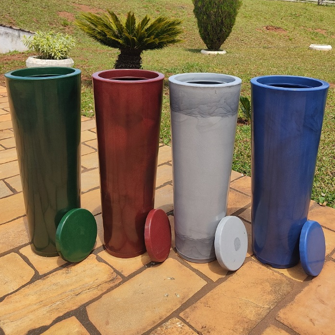 Kit com 2 vaso polietileno para plantas decorativo luxo coluna Ibiza efeito marmorizado e polido