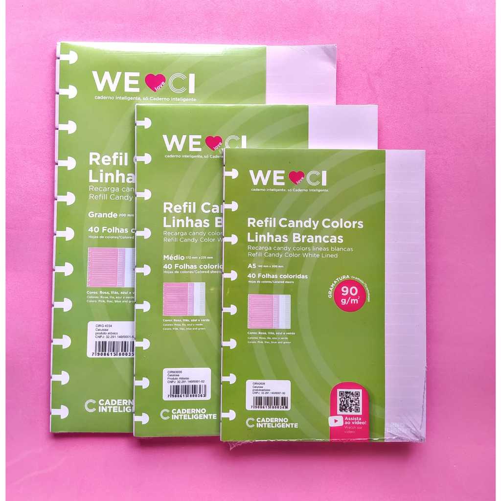 Refil de folhas Candy Colors do CADERNO INTELIGENTE Grande Médio Pequeno Pautado