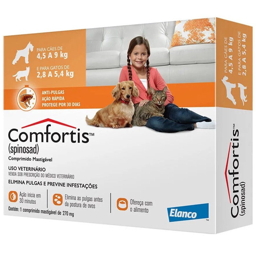 Antipulgas Elanco Comfortis 270 mg para Cães de 4,5 a 9 Kg e Gatos de 2,8 a 5,4 Kg