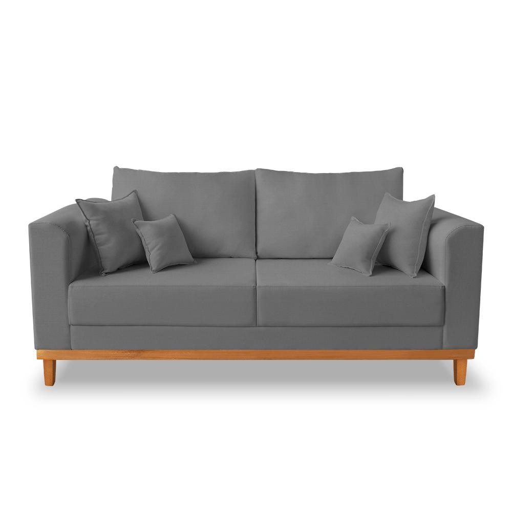 Sofá 3 Lugares Retro Sala de Estar Beny Linho Grafite Madeira Estofados