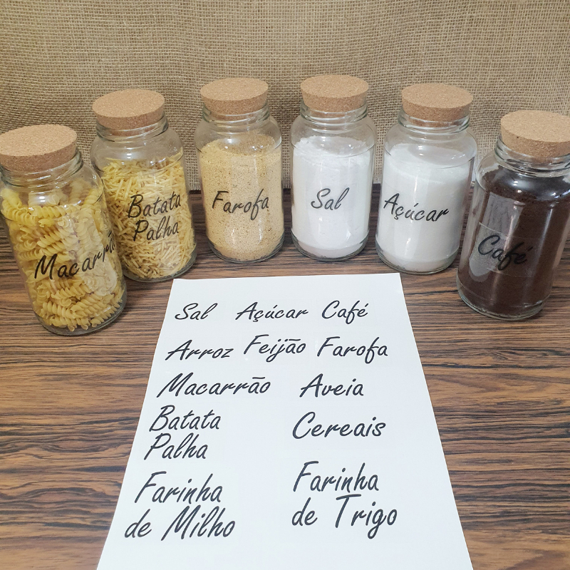 Kit Mantimentos 830ml - 6 Potes de Vidro com Rolha + 12 Etiquetas Adesivas