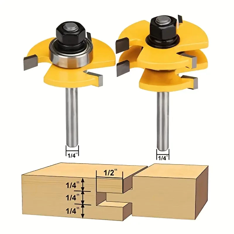 Kit Fresa Tupia Macho Fêmea Para Tupia Manual Haste 6mm Laminas de liga para corte suave