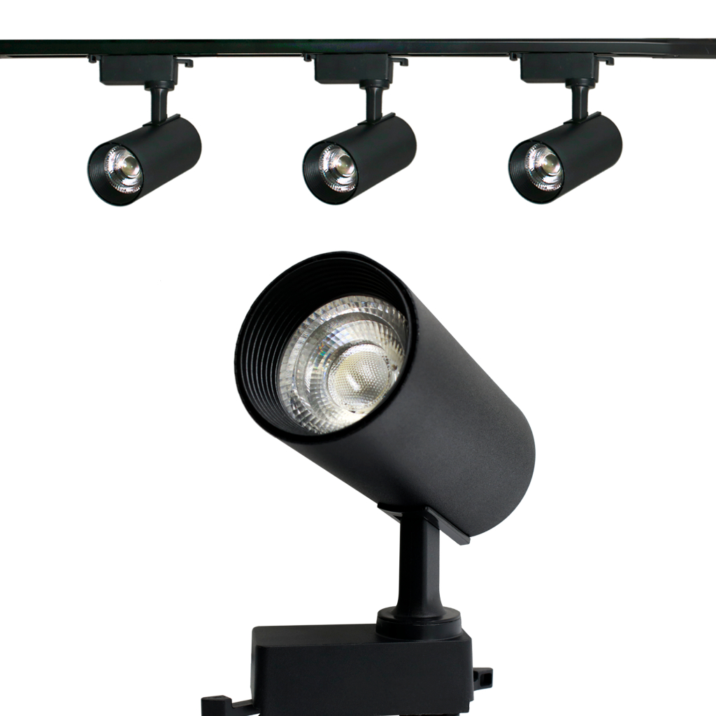 Kit Trilho Spot LED Eletrificado 1M Trilho + 3 Spots Led Cor Preto Branco Bivolt 7W 10W 15W 20W 30W