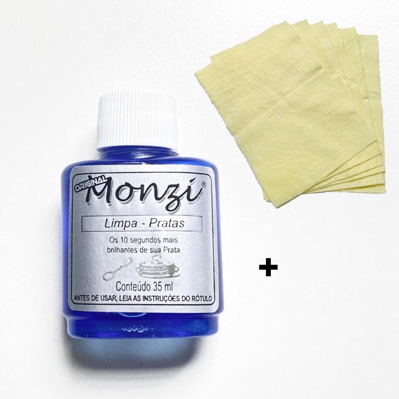 1 Monzi 35ml Limpa Prata + 1 unidade Flanela limpa joias prata ouro flanela original monzi