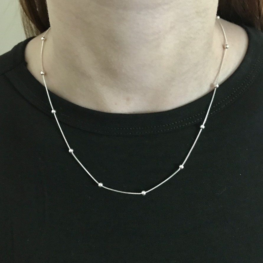 Corrente Mini Elo Português com Bolinhas 2.2mm | 45cm | Prata 925