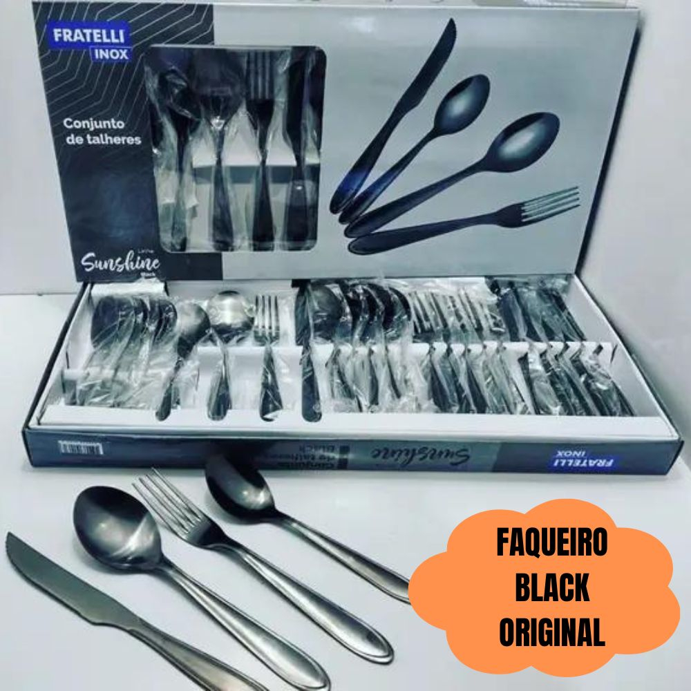 Kit Faqueiro Jogo Talheres Black Preto Fosco Aço Inox 24 Peças Sunshine Oferta Promoção