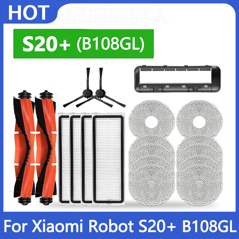 Adequado para Xiaomi varrendo acessórios do robô S20 + (B108GL) escova lateral rolo escova filtro malha Mop pano rolo escova placa de cobertura