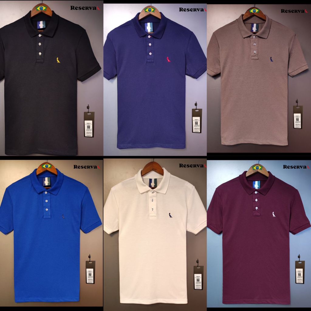 Kit de 5 camisa polo masculina algodão piquet 24 marcas e cores variadas