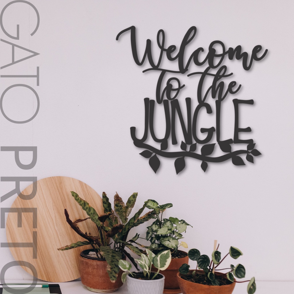 Placa Quadro Decorativo Welcome To The Jungle Lettering Música Banda Guns And Roses MDF Fita Dupla Face Adesiva Preto