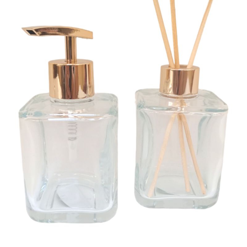 Kit Banheiro Porta Sabonete Líquido e Difusor de Essência Aromatizante Dourado Luxo