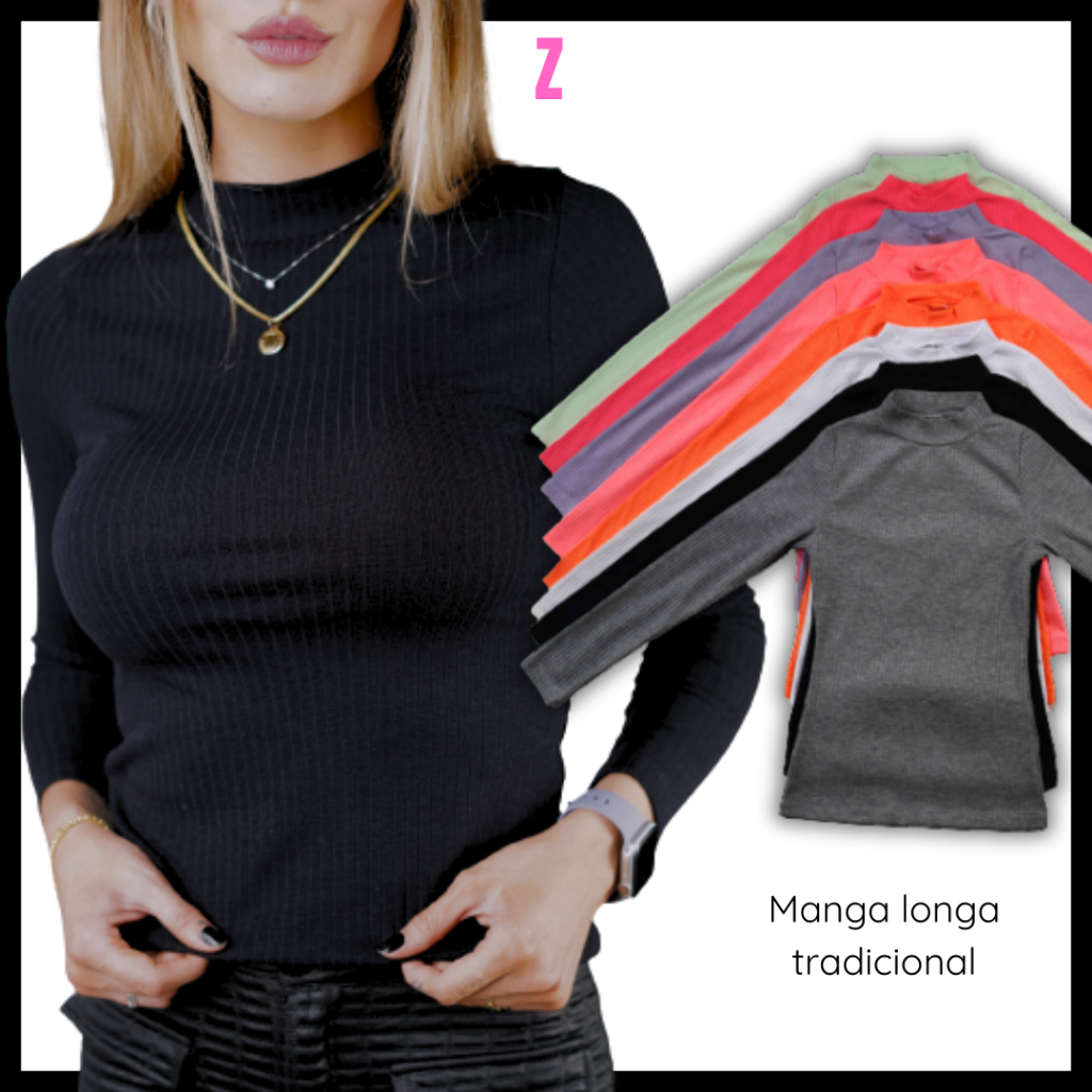 Kit 10 Blusa Canelada Feminina Gola Alta com Manga Blusinha Blogueira