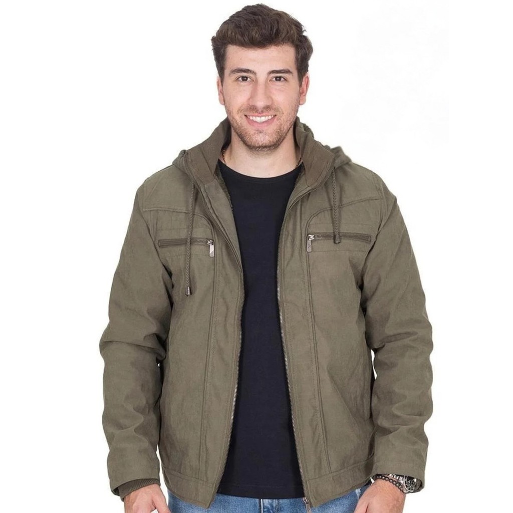 Jaqueta Sarja Peluciada Masculina Com Bolsos Capuz Removível