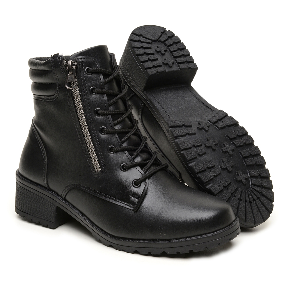 Bota Coturno Feminino Salto Baixo Casual Leve Macio com Zíper e Cadarço