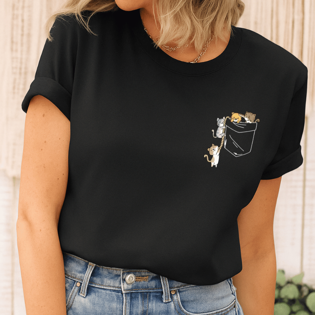 Camiseta Feminina Estampada Com Desenho Animado De Gatinhos
