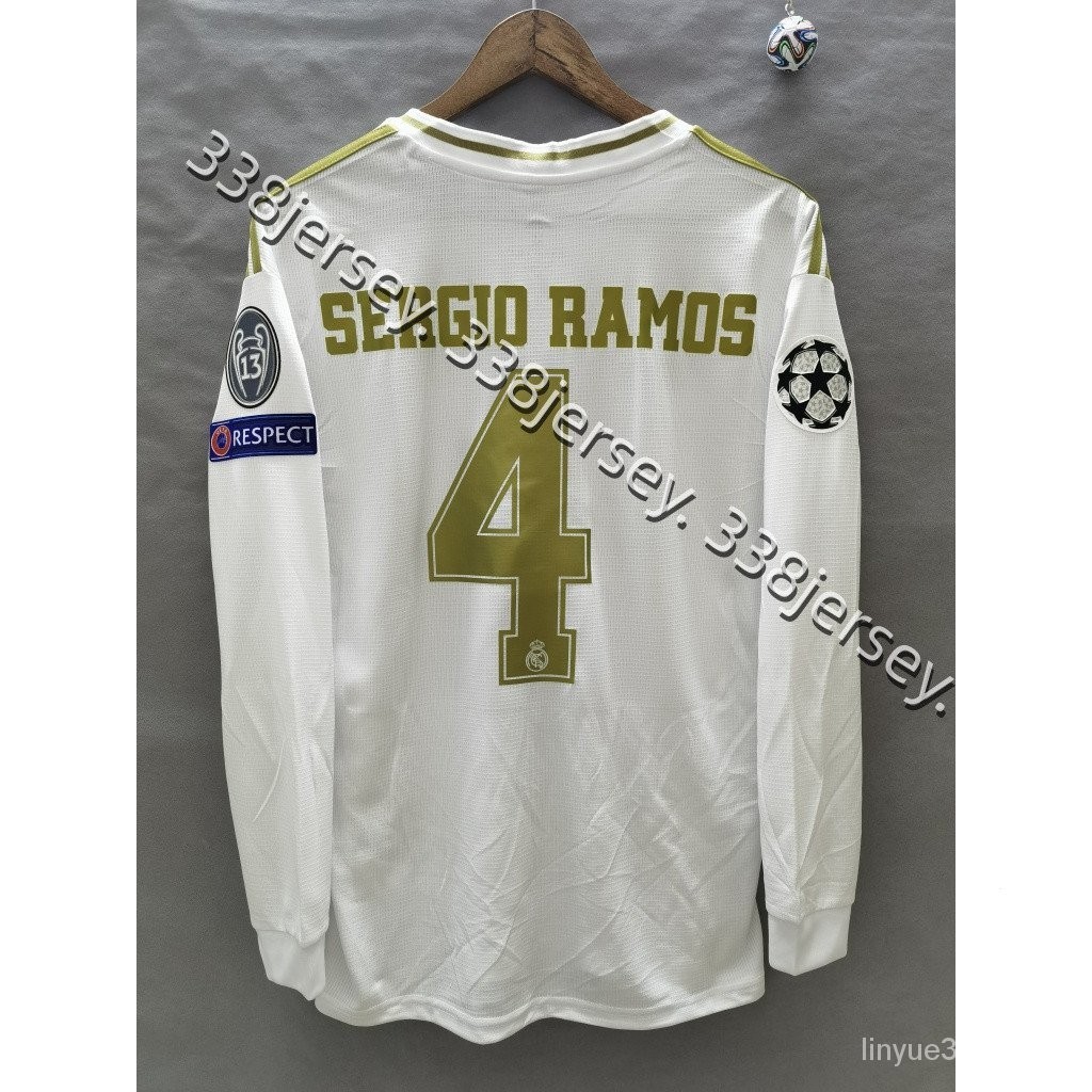 R AMD Real Madrid Manga Longa 19-20 BENZEMA Sergio Ramos Reprodução Material de Alta Qualidade T-Shirt De Futebol Retro N0S 0