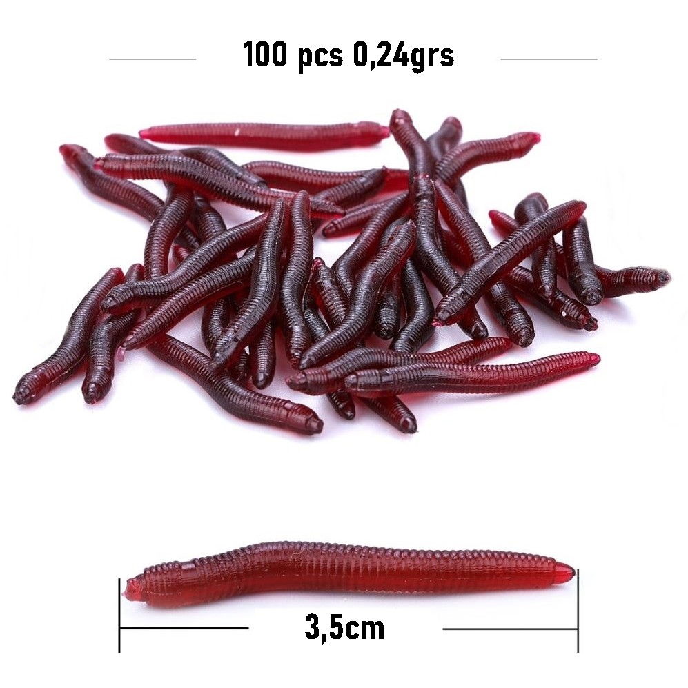 Kit 100 Iscas Artificiais Minhocas Silicone Soft 3,5cm 0,24g Frete Grátis