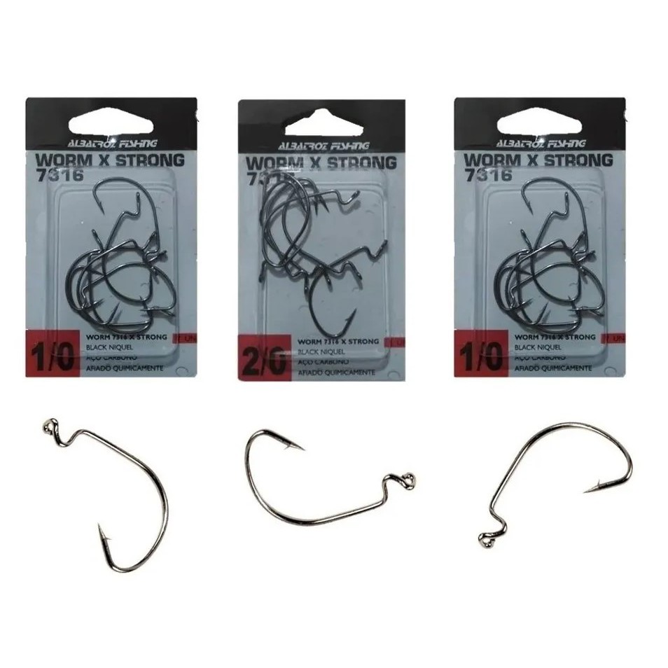 Kit 3x Anzol Offset Albatroz Para Isca Soft Worm 7316