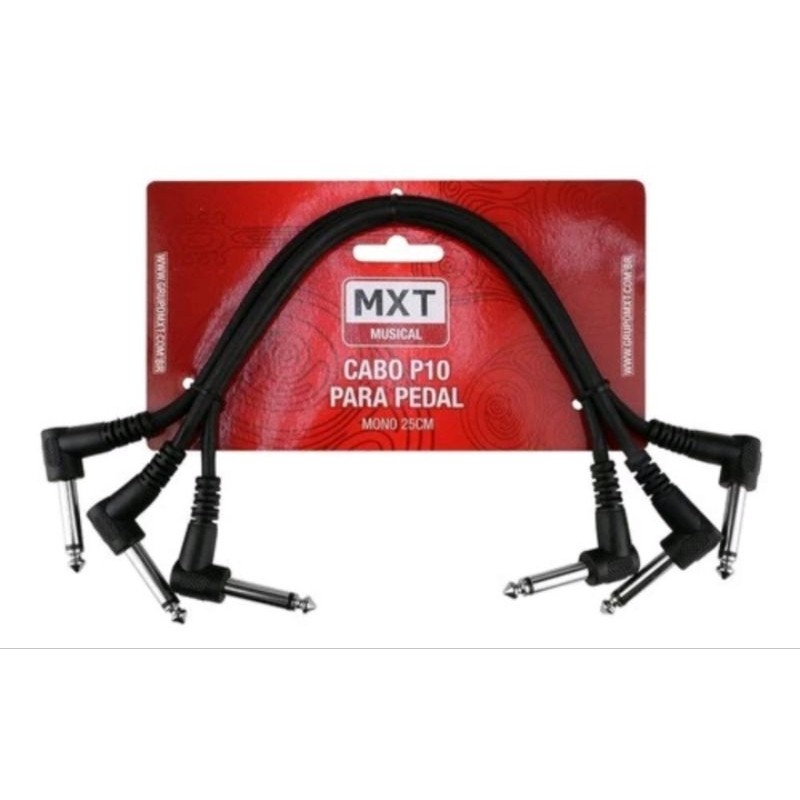 kit 3 Cabo P10 Mono Mxt Para Pedal 0,20mm Blindado Niquelado 25 cm