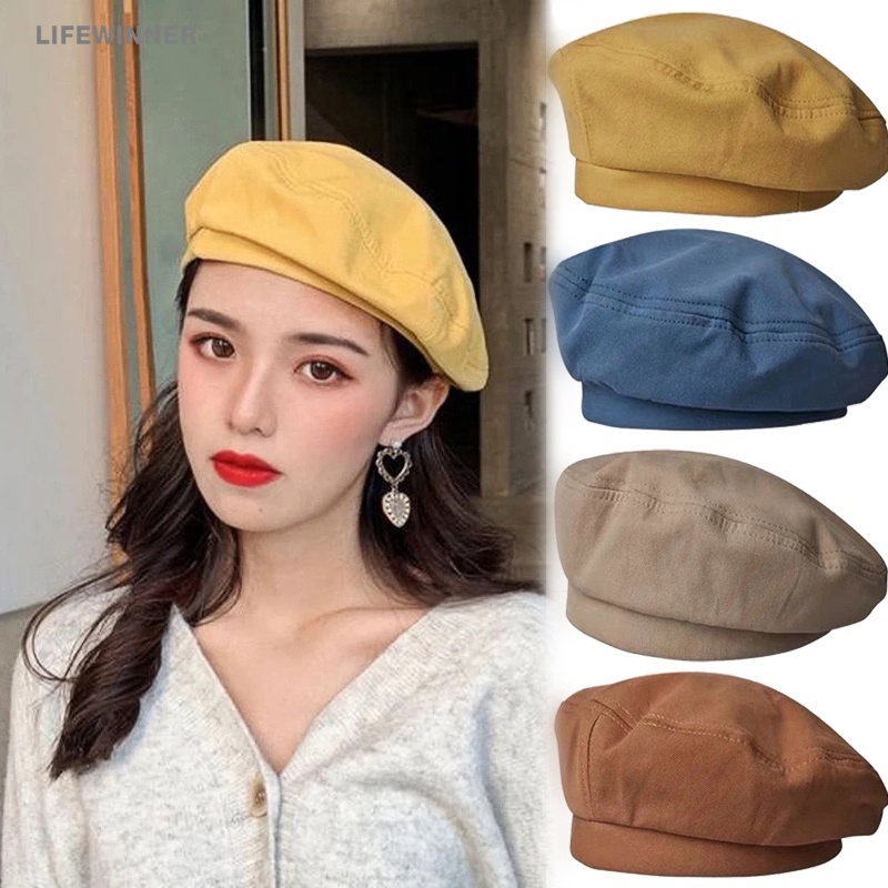 Boina Feminina De Cor Sólida Vintage Elegante Japonesa Octogonal Chapéu De Pintor