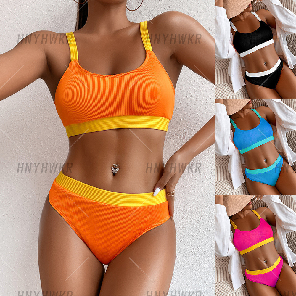 2025 novo estilo biquíni conjunto de duas peças de alta qualidade cintura alta fresco europeu americano senhoras roupa d