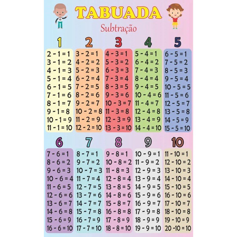 Banner Pedagógico Educativo Tabuada De Subtração Sil98 PaxArt